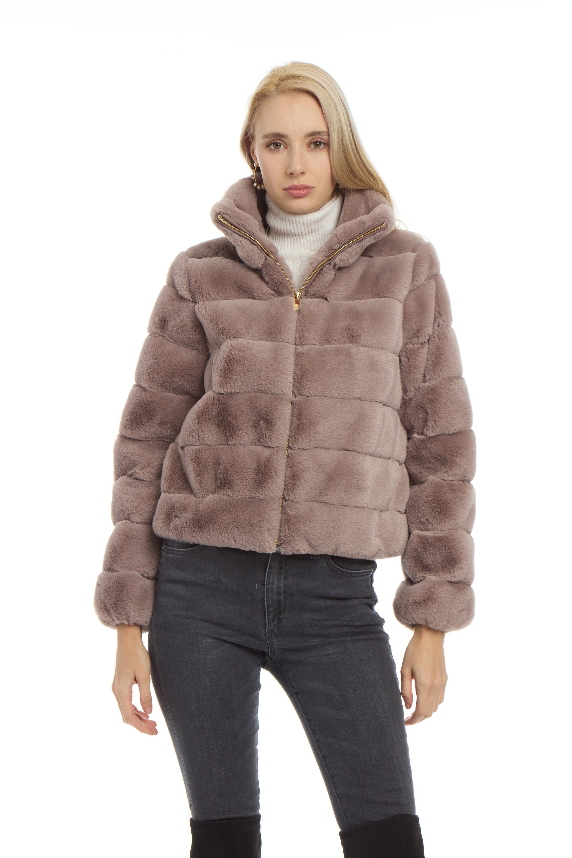 Our best-selling Lulu Crop Faux Fur. Soft and plush with hook closure. Fully lined.