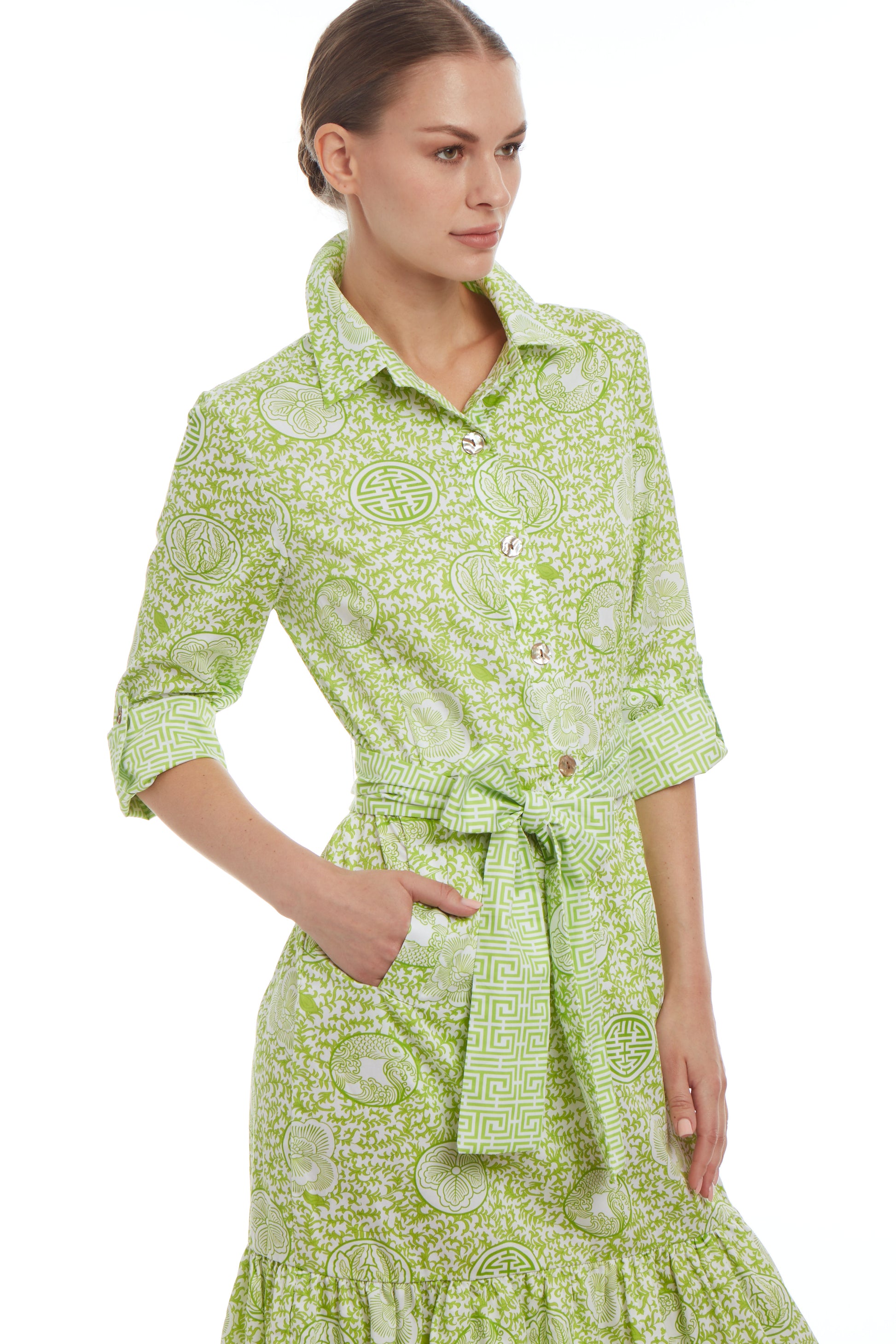 Essential shirt dress with contrast, adjustable sleeves. Final sale, no returns or exchanges.
